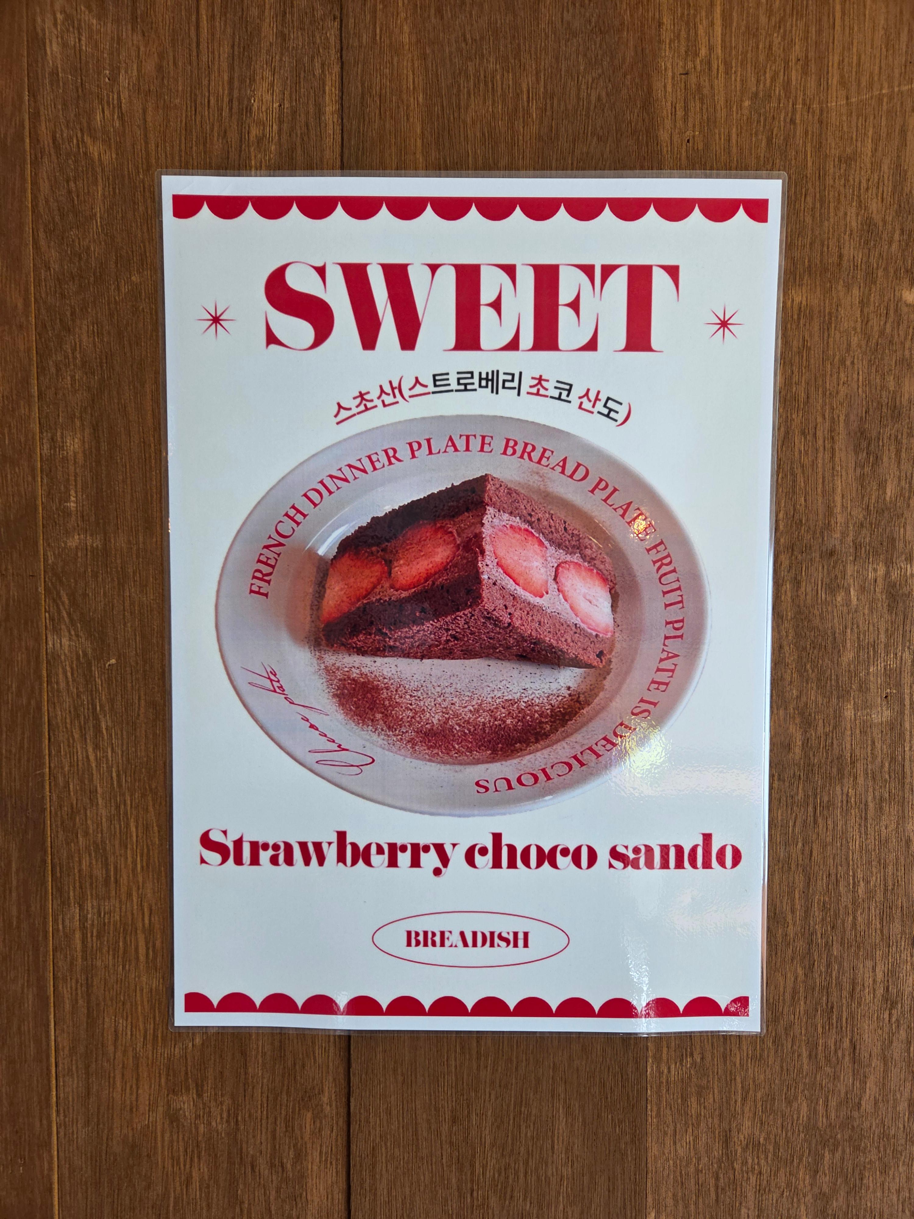들어가보니 아예 딸기초코샌드를 메인 메뉴 중 하나로 소개를 했습니다. 다만, 놀라운 토요일에는 딸기초코샌드로 소개가 되었는데 실제 메뉴는 스초산(스트로베리 초코 산도)로 소개 되어 있었습니다.
