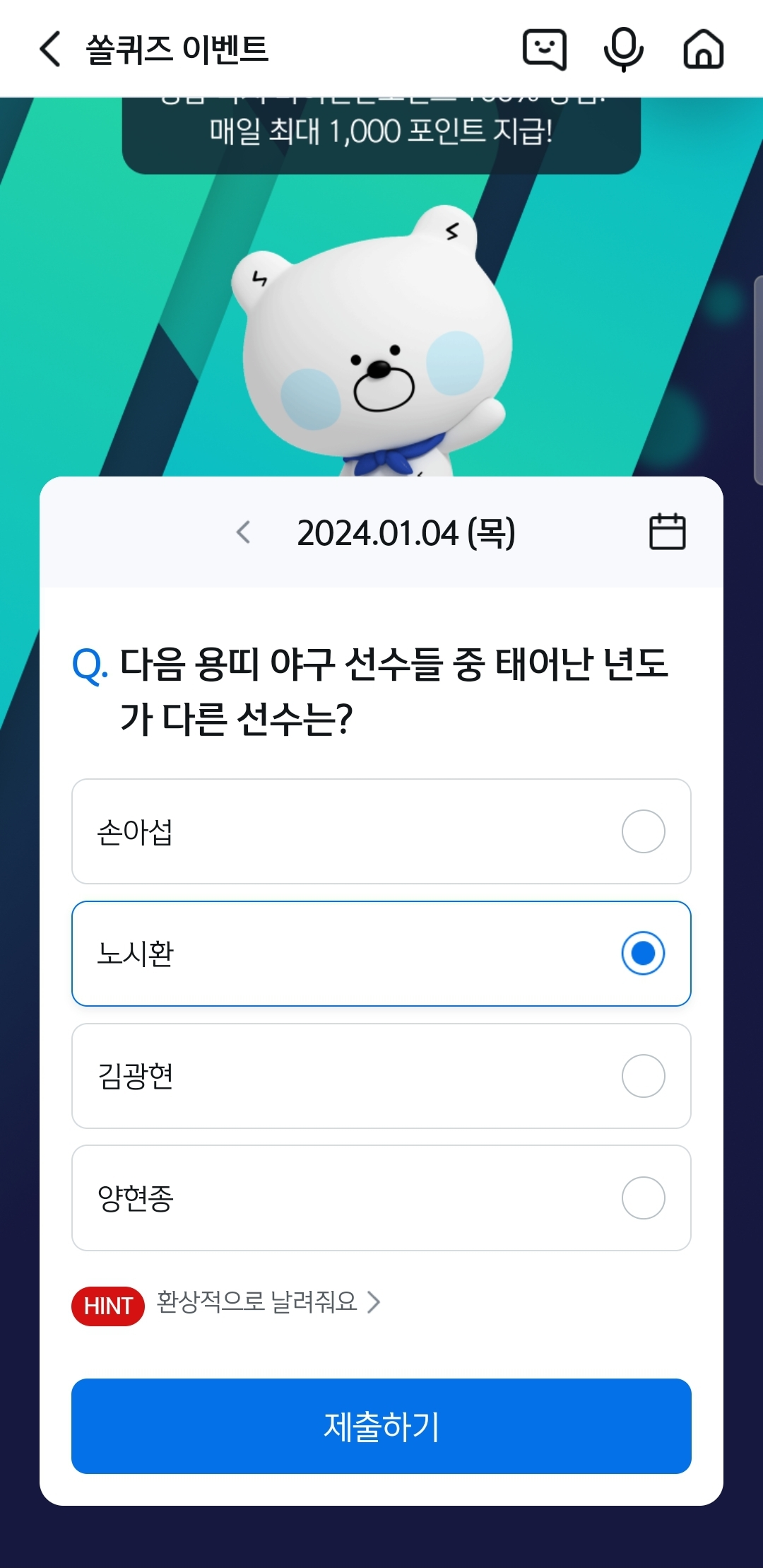 신한 쏠뱅크 쏠야구 1월 4일 정답