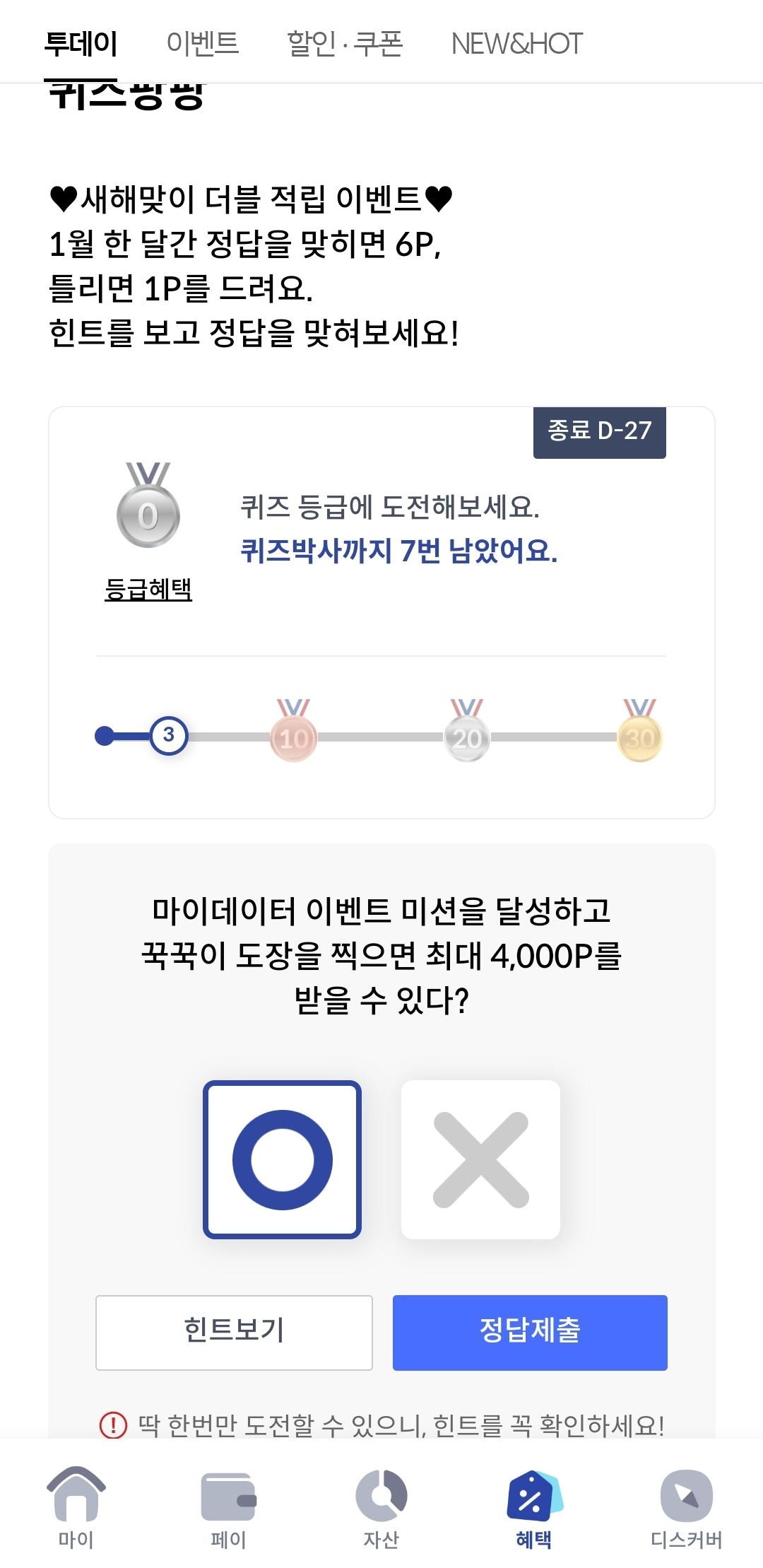 - 마이데이터 이벤트 미션을 달성하고 꾹꾹이 도장을 찍으면 최대 4,000P를 받을 수 있다?