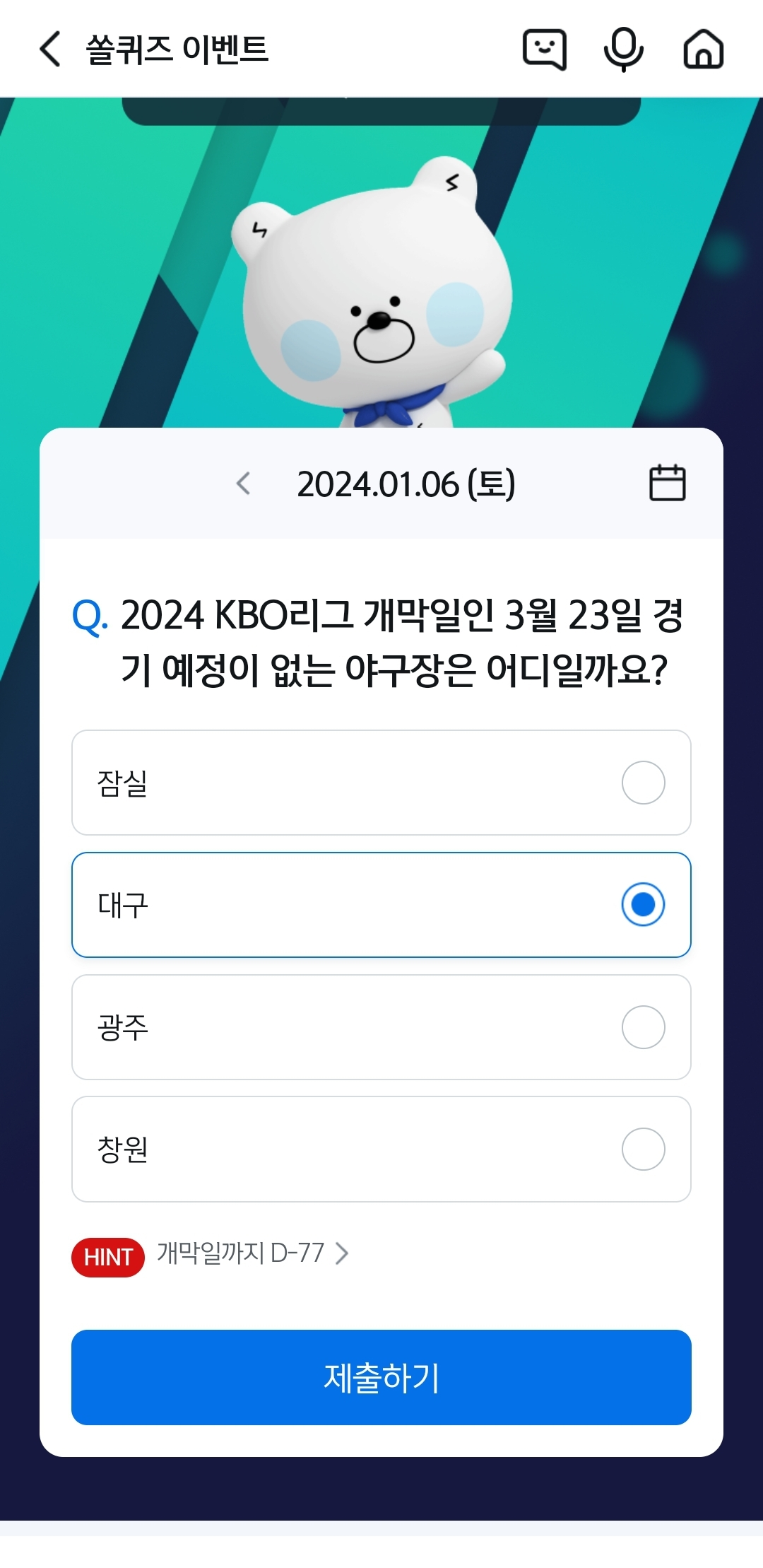 신한 쏠뱅크 쏠야구 1월 6일 정답
