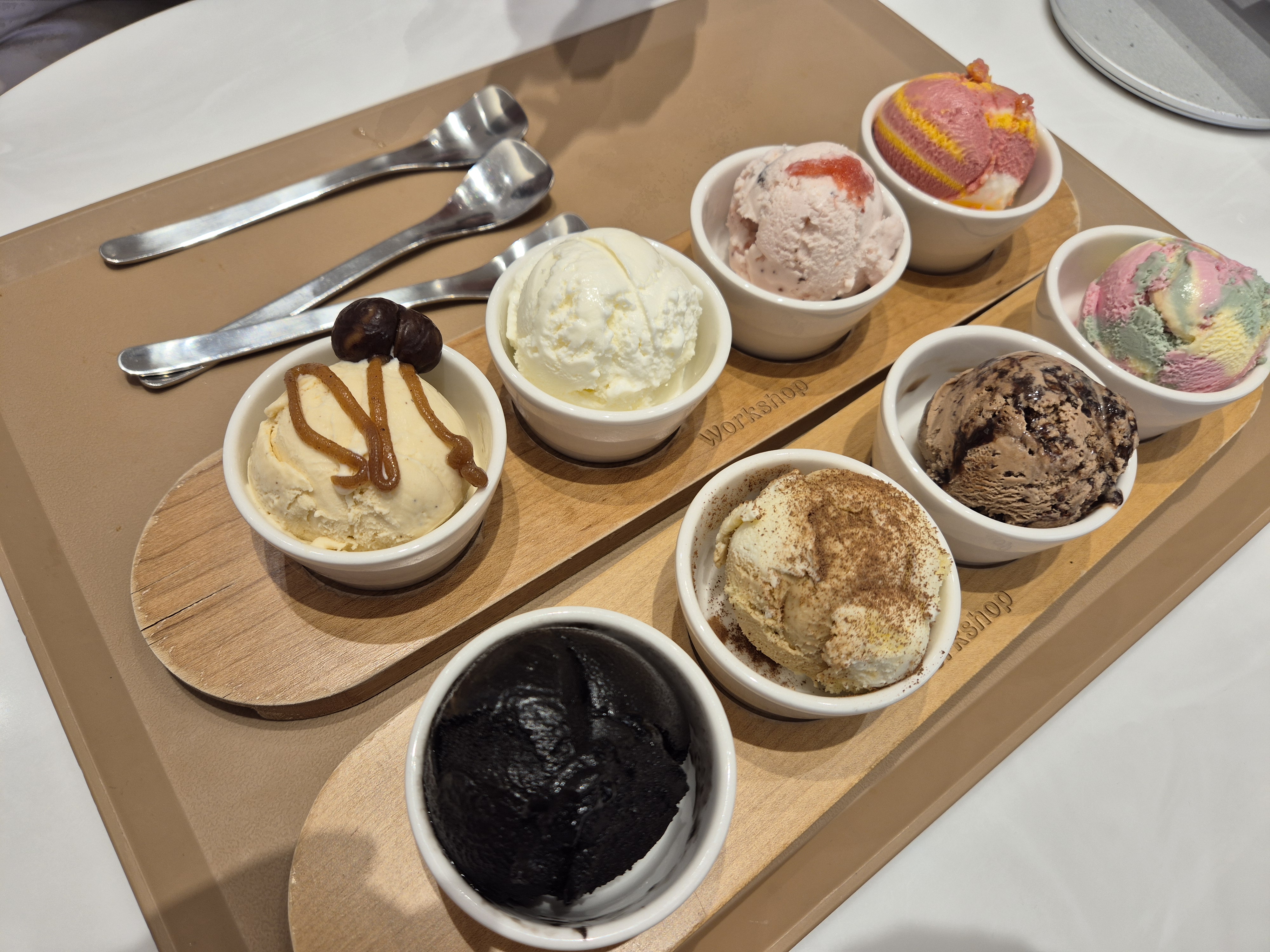 위의 사진들은 방문 했을 때 신기해서 찍어본 사진들입니다. 그리고 여기에서는 실험하고 있는 맛이나, 잠시 시즌 메뉴로만 나왔던 메뉴들을 맛볼 수 있는데요. 이 메뉴들은 일반 쿼터나 싱글로는 선택할 수 없고, 워크샵 샘플러 메뉴로 맛볼 수 있습니다.