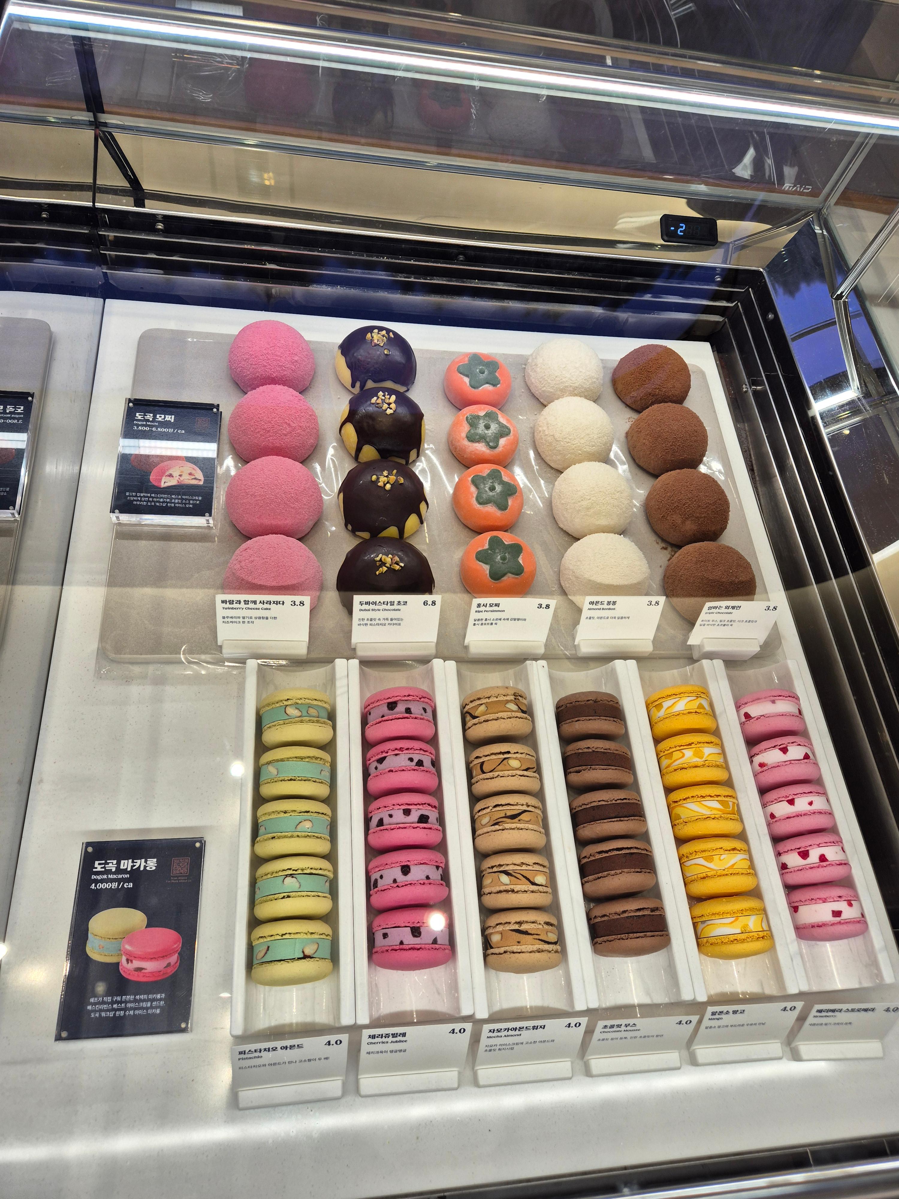 블랙 소르베, 모카 티라미수, 초코 아몬드 봉봉, 핑크 러브 였던 것 같습니다. 메뉴는 맞는데 순서는 틀렸을 수도 있습니다.