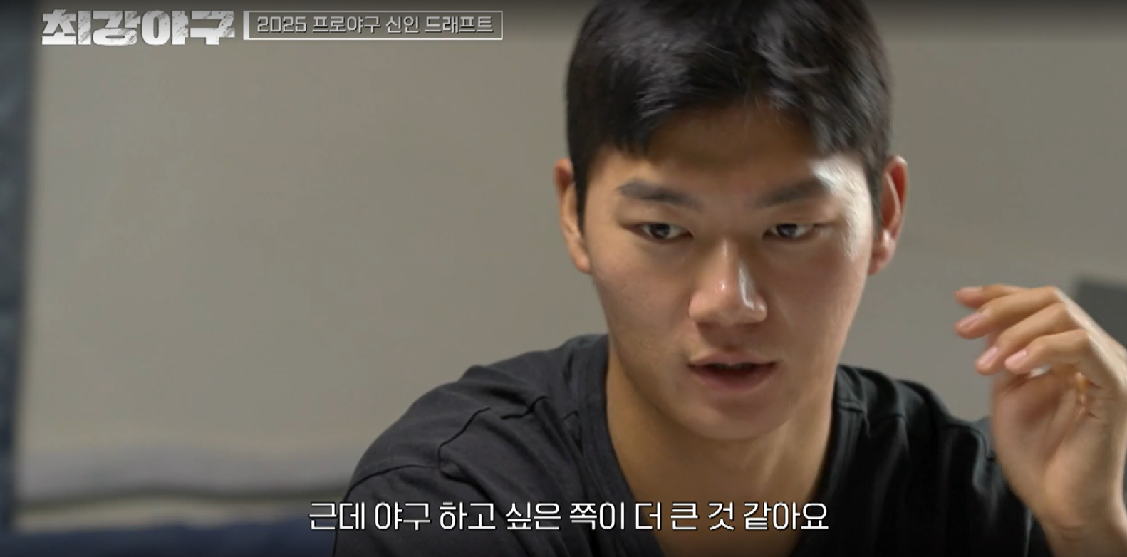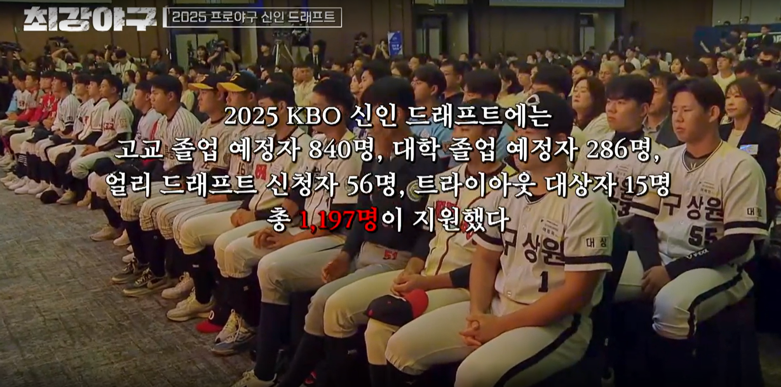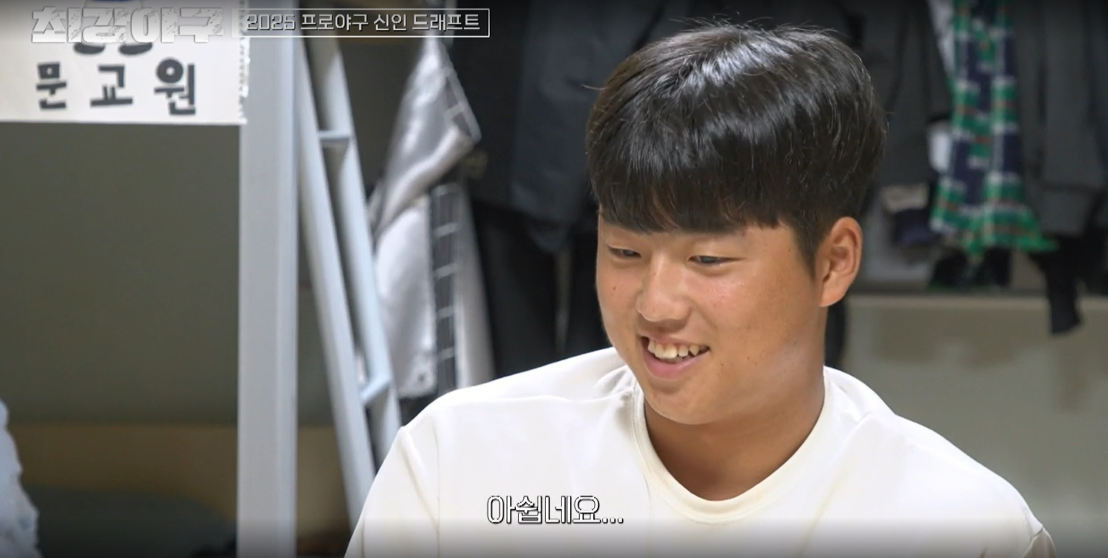 일단 강릉고 경기를 보여주기 전, 2025 프로야구 신인 드래프트에 대한 내용이 나옵니다.