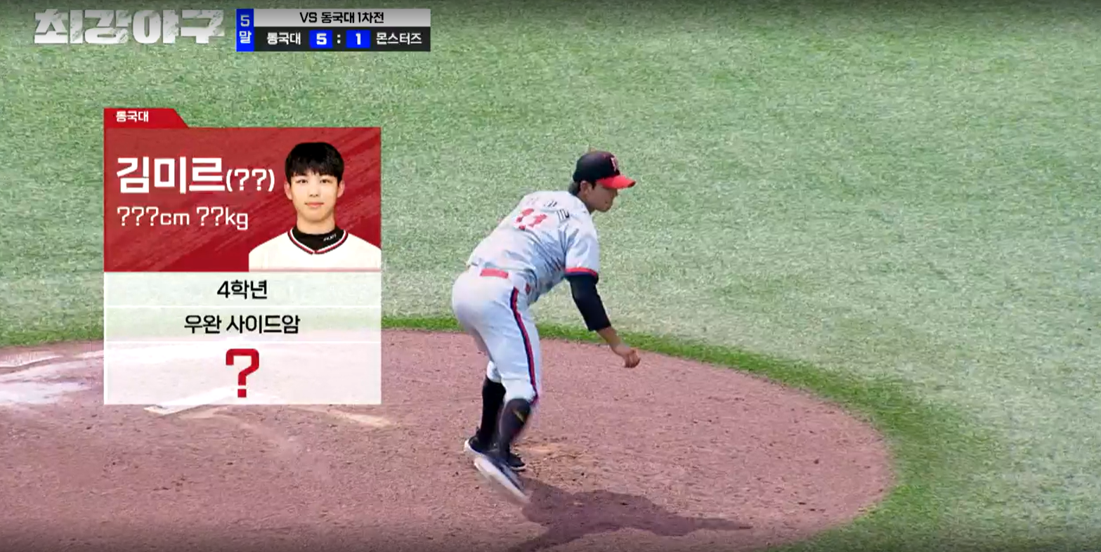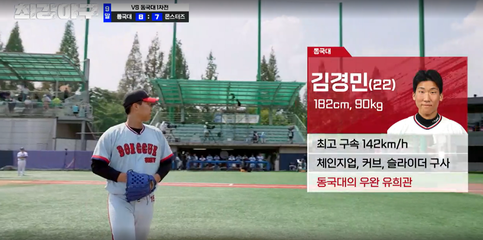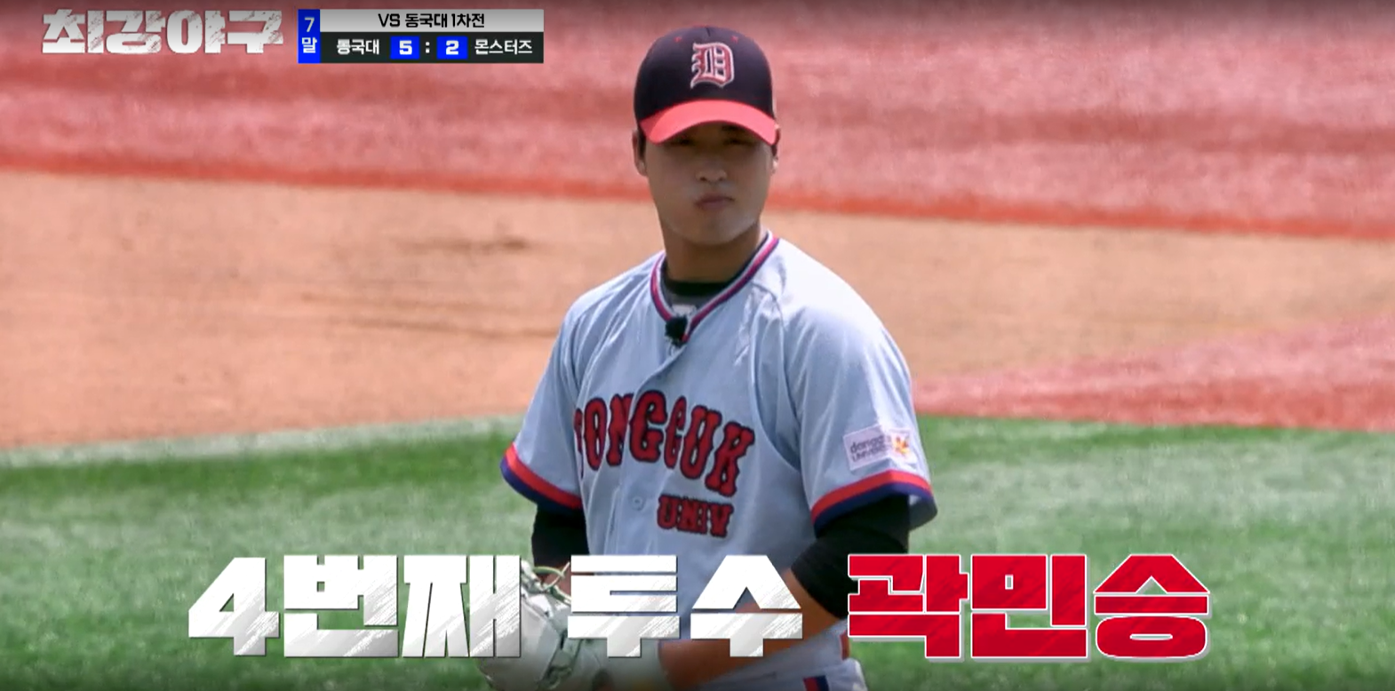 그리고 몬스터즈의 7회 말로 넘어갑니다. 동국대는 4번째 투수인 곽민승을 투입합니다.