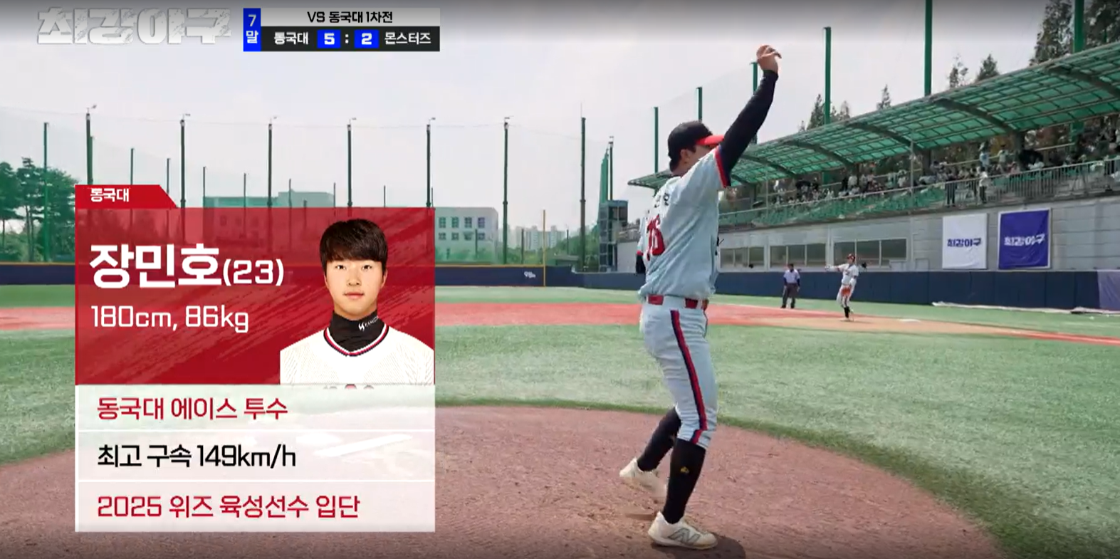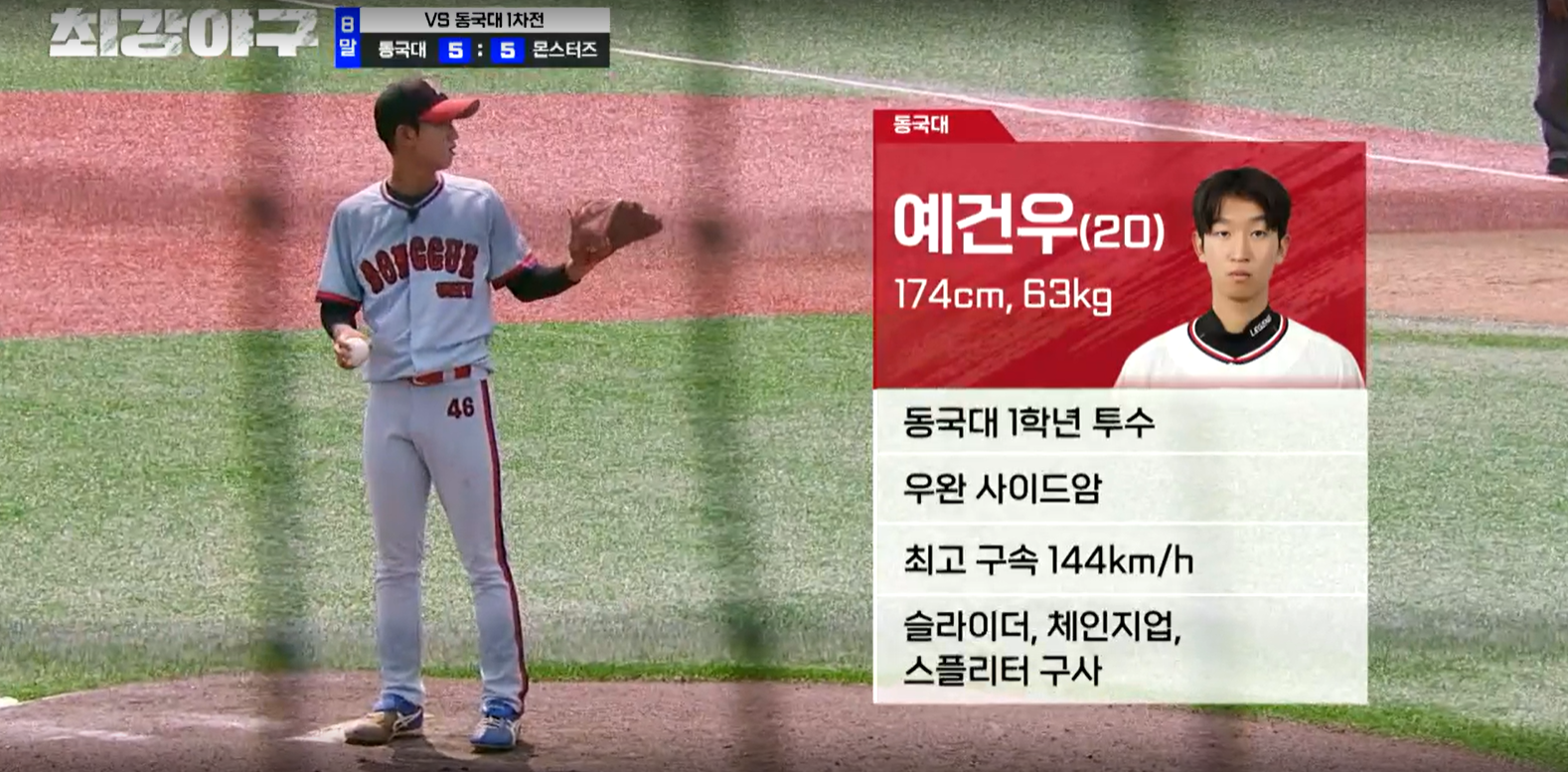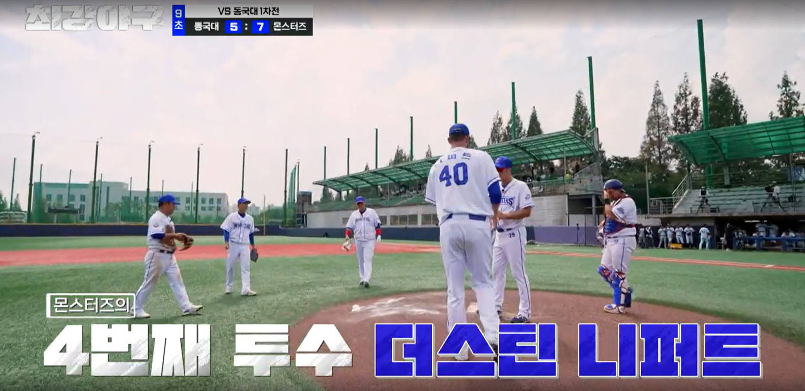 그리고 몬스터즈의 7회 말로 넘어갑니다. 동국대는 4번째 투수인 곽민승을 투입합니다.
