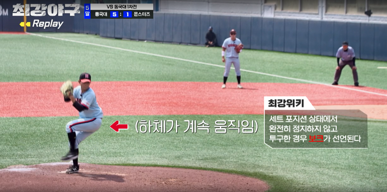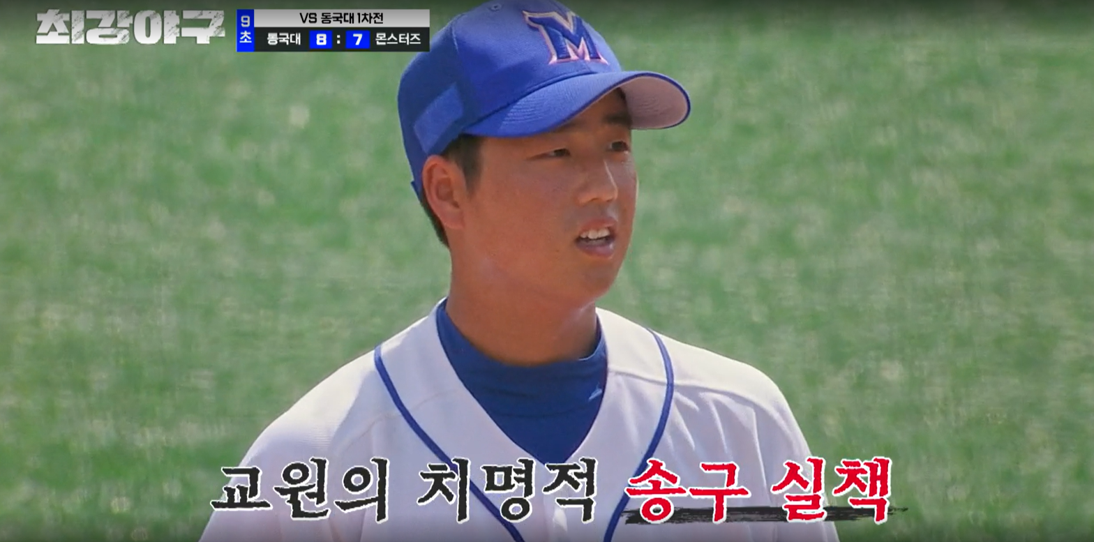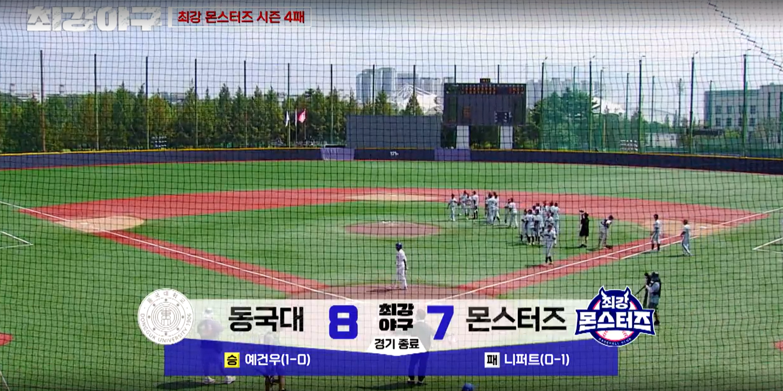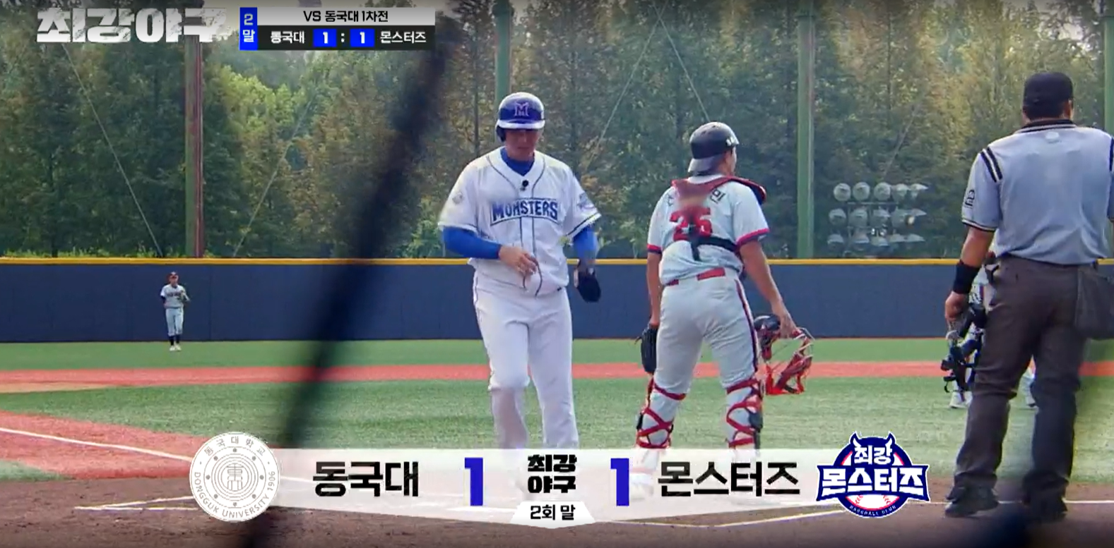 그리고 몬스터즈의 7회 말로 넘어갑니다. 동국대는 4번째 투수인 곽민승을 투입합니다.