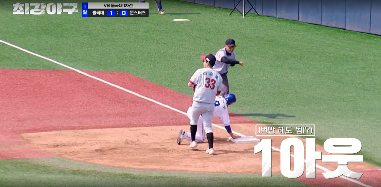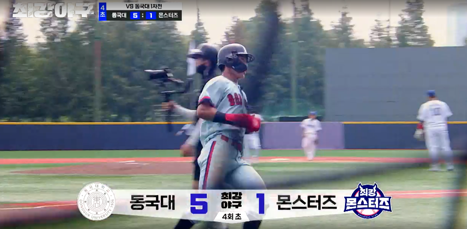 윤상혁까지 아웃되었으며, 마지막 타자인 정근우 역시 아웃되며 결국 승부는 동국대의 대역전승으로 끝납니다.