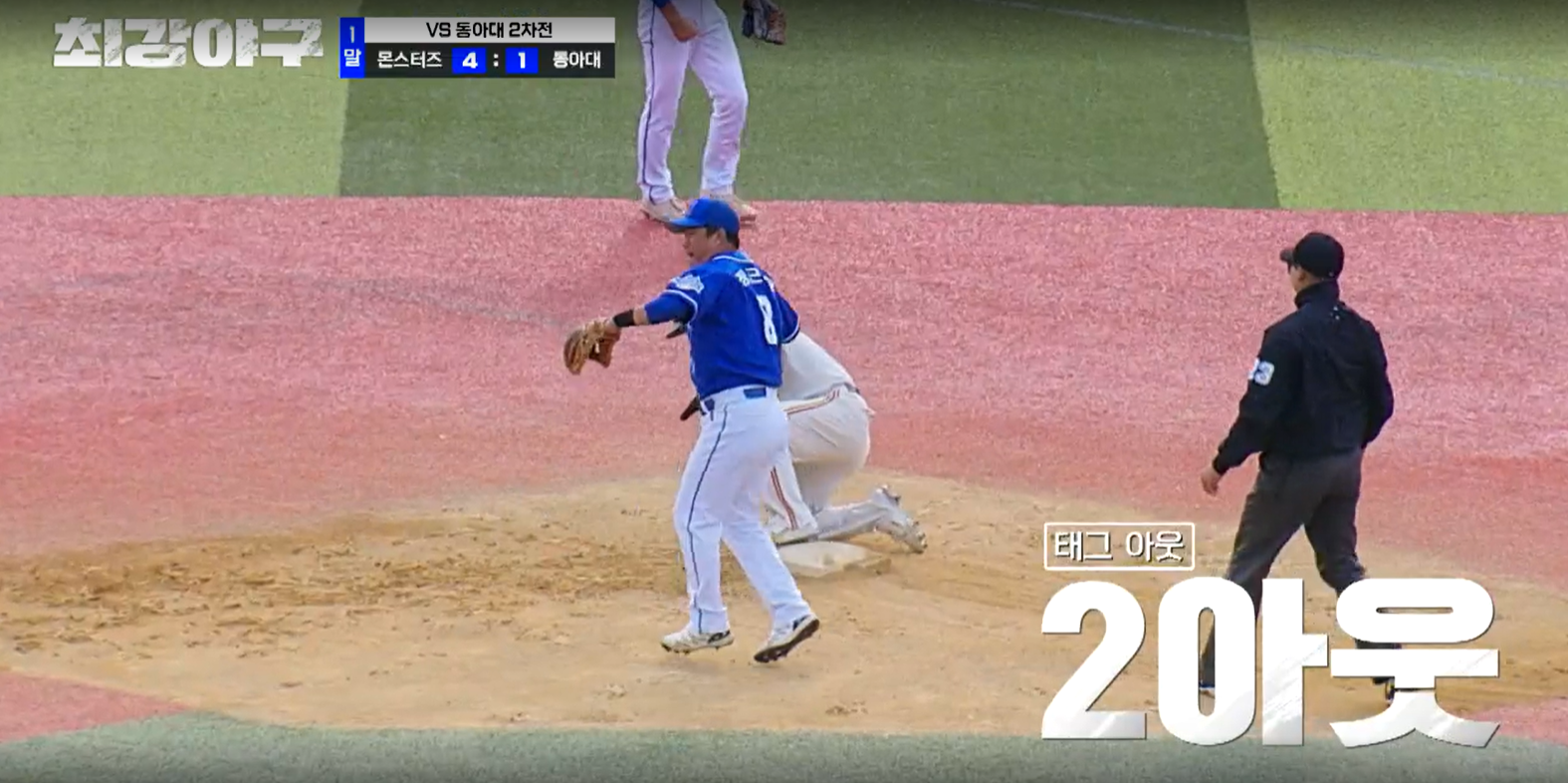 다행히 강민구는 다음 타자를 삼진으로 잡습니다. 그리고 다음 타자는 외야 플라이로 잡아냅니다. 그 사이에 동아대는 태그업을 하며 결국 동점을 만듭니다.