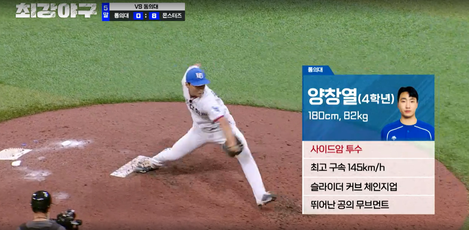 박재욱과 임상우가 물러났지만, 정근우 최수현이 볼넷으로 출루하며 몬스터즈는 다시 한 번 2사 만루 찬스르 맞이합니다. 그러자 동의대는 4번째 투수 양창열을 투입합니다.