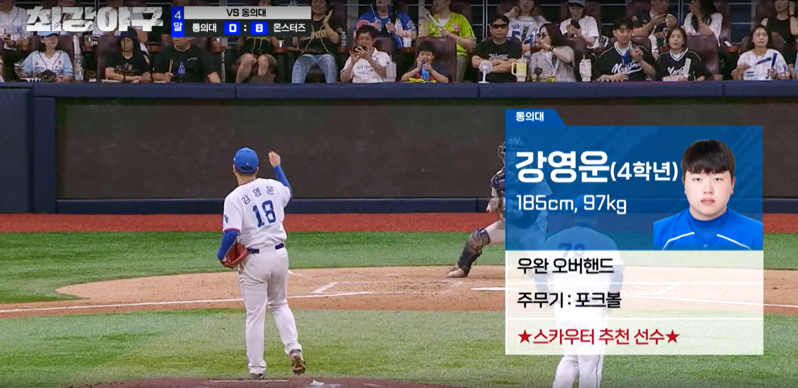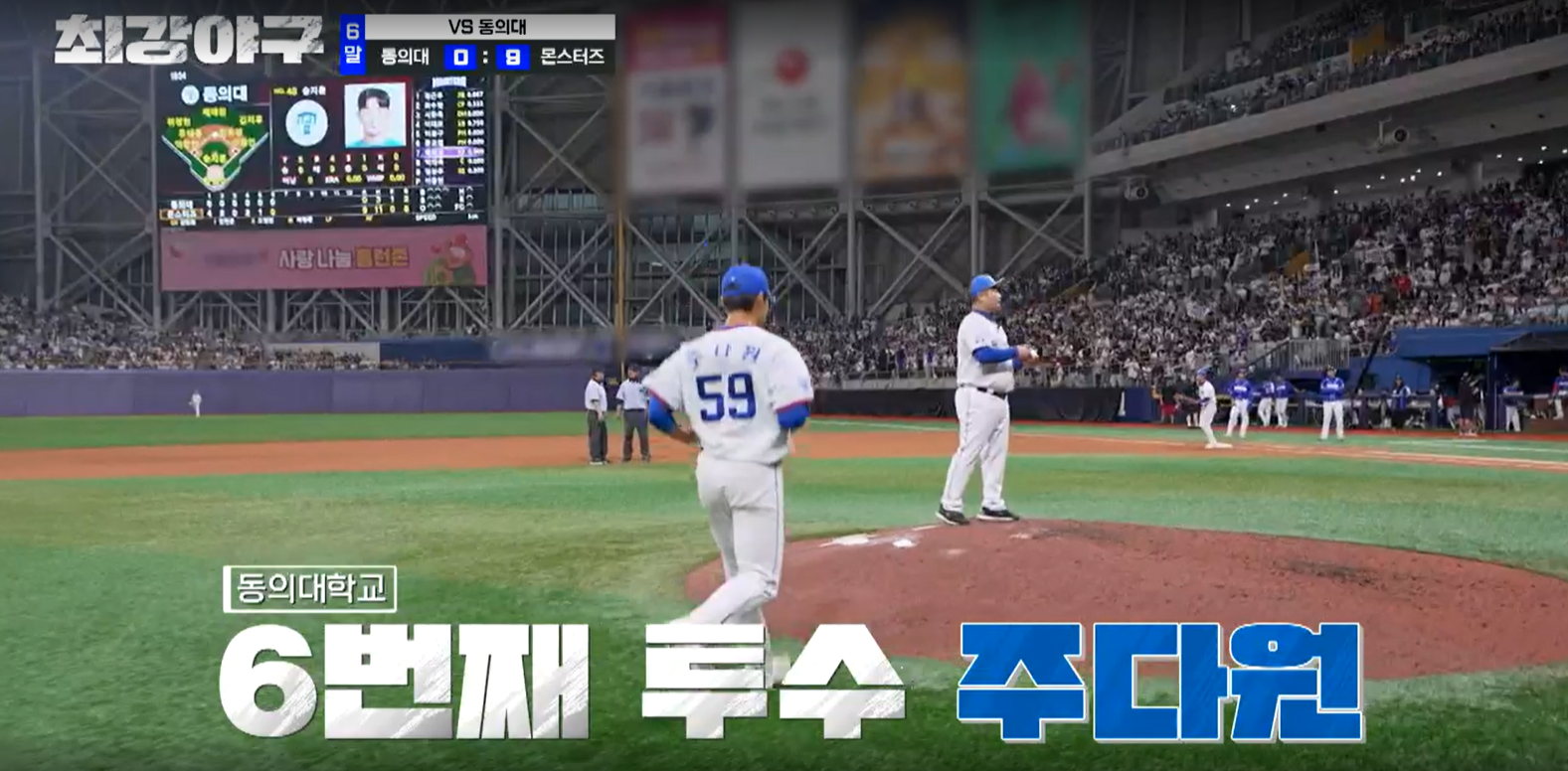 6회 초, 동의대 공격이 시작됩니다. 몬스터즈는 예고되었던 대로 이용헌을 마운드에 올립니다.
