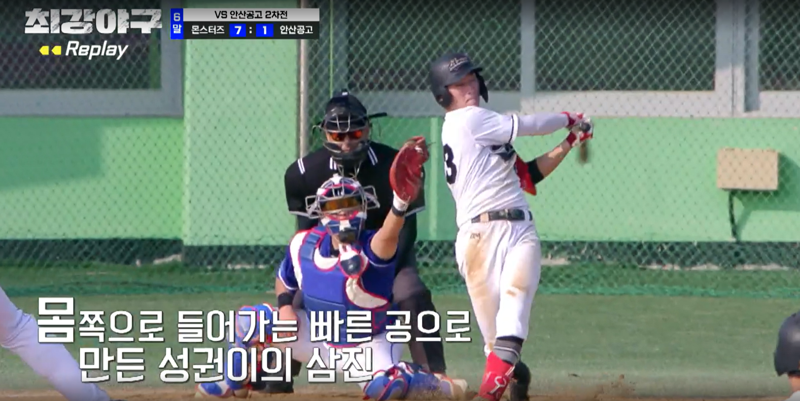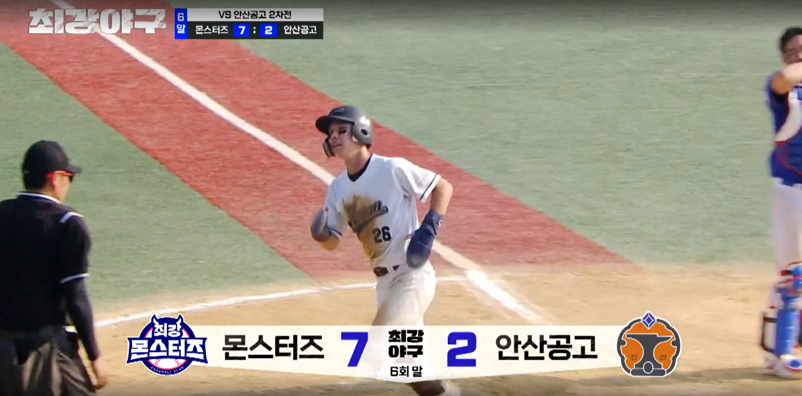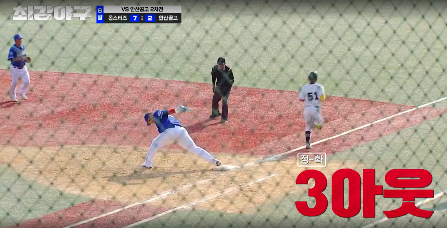 6회 초, 몬스터즈의 공격은 편집되었으며, 6회 말 안산공고의 공격이 시작됩니다. 그리고 마운드에는 이대은에 이어 선성권이 바로 올라옵니다. 6점 차이긴 하지만 나름 승리를 지켜야 하는데요. 잘 막을 수 있을까요?