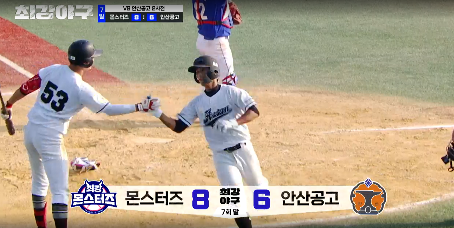 5회 초, 몬스터즈의 공격은 편집되었으며, 5회 말 안산공고의 공격으로 넘어갑니다. 이대은은 5회에도 삼진 2개와 플라이를 더해 삼자범퇴로 이닝을 마무리 합니다.