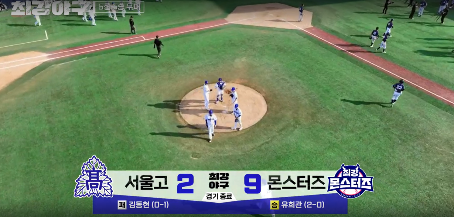 몬스터즈와 맞서는 서울고등학교는 KBO의 레전드 포수 출신인 김동수 감독이 이끌고 있으며, 총 85명의 프로선수를 배출한 명문 야구고등학교입니다. 서울고 출신의 대표적인 현역 KBO 선수는 박건우(61기, NC), 이형종(60기, 키움), 안치홍(61기, 한화), 강백호(70기, KT), 김서현(한화)가 있으며, 그 뒤를 이을 잠룡4인방(최민석, 곽병진, 김동현, 김영우) 이 주요 선수들이라고 합니다. 이 중, 김영우는 에이스로 이미 프로구단들의 관심을 받고 있는 선수라고 합니다.