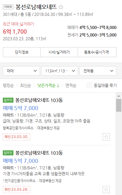 아마도 이게 가장 문제겠죠? 비교대상 아파트를 잡기가 애매했는데요. 저는 인근 10년 차가 넘지 않은 제일풍경채 및 인근 길 건너 주월동의 봉선로 남해오네뜨와 비교하겠습니다. 봉선동 학원가 및 문성 중고등학교 바로 앞에 있는 제일풍경채와 이편한세상 봉선 셀레스티지가 비교대상이 되겠느냐 생각하시는 분들도 계실 것 같은데요. 일단 상단을 제일풍경채로 놓고, 남해오네뜨를 하단으로 놓은 후, 그 중간 정도로 시세를 보면 대략적인 적정가가 나오지 않을까 생각해 봅니다.