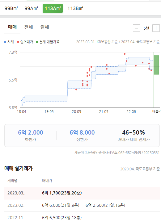 상단인 제일풍경채만큼 시세가 나오진 않을 테니 8억이 시세라 할 수는 없을 것이나, 반대로 봉선로남해오네뜨의 실거래인 6억 초반보다 낮을 것이냐 생각해 보면 그것은 아니라 봅니다. 결국 이 두 아파트의 중간 정도인 7억을 적정 가격이라 보면 기준층은 시세에 맞게 나온 수준이라 봅니다. 다만 세대수가 많지 않은 관계로 완판까지는 문제없지 않을까 예상해 봅니다.