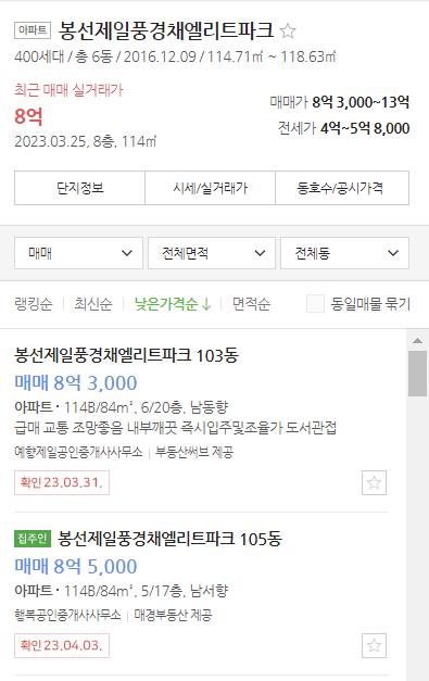 아마도 이게 가장 문제겠죠? 비교대상 아파트를 잡기가 애매했는데요. 저는 인근 10년 차가 넘지 않은 제일풍경채 및 인근 길 건너 주월동의 봉선로 남해오네뜨와 비교하겠습니다. 봉선동 학원가 및 문성 중고등학교 바로 앞에 있는 제일풍경채와 이편한세상 봉선 셀레스티지가 비교대상이 되겠느냐 생각하시는 분들도 계실 것 같은데요. 일단 상단을 제일풍경채로 놓고, 남해오네뜨를 하단으로 놓은 후, 그 중간 정도로 시세를 보면 대략적인 적정가가 나오지 않을까 생각해 봅니다.